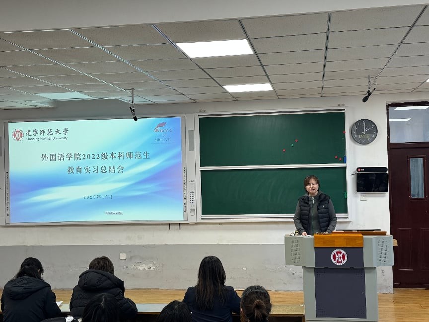 2025年12月24日下午,外国语学院于外语楼一合召开2022级本科师范生教育实习总结大会。我院教学副院长刘丹丹,英语系教师高丰、屈荣英、国华、杨健林、谷健、杨爱研、胡晓玉、刘梦瑶,日语系李宜冰等教师代表出席大会。会议由高丰老师主持。